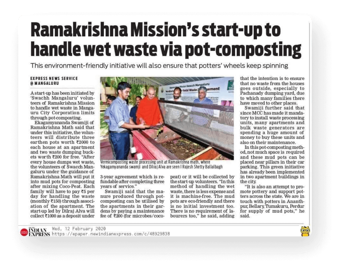 Join a start-up born out of a Swachh Abhiyan! We've been volunteering since 2014 and we have now institutionalized waste management with innovative breakthroughs.